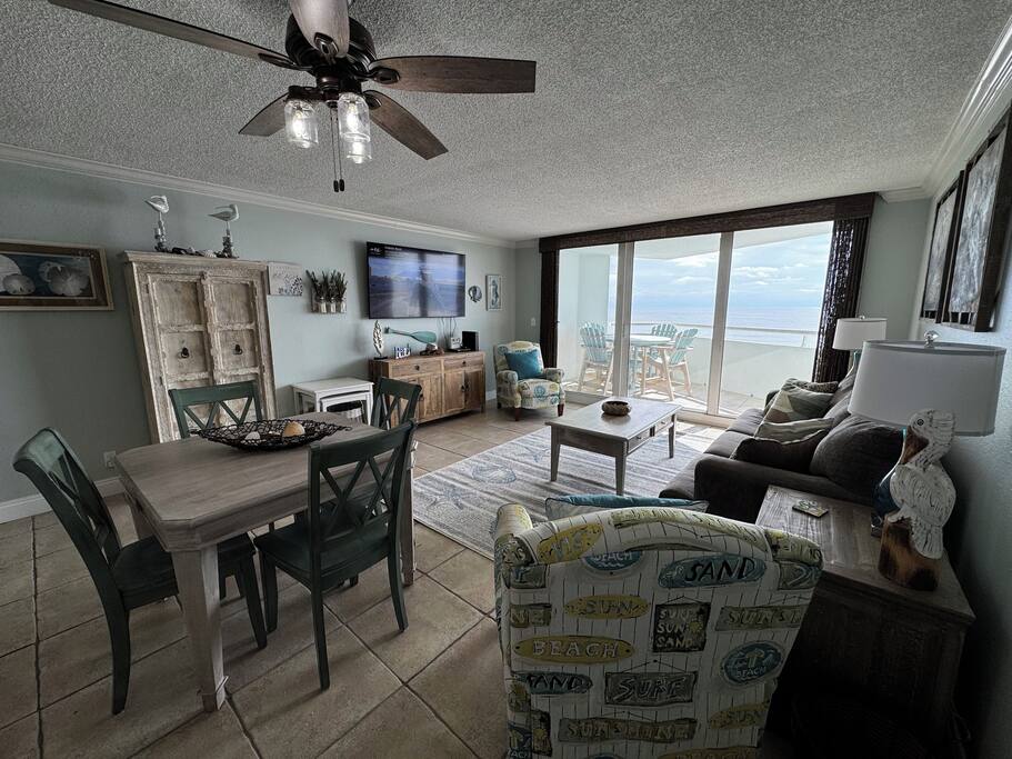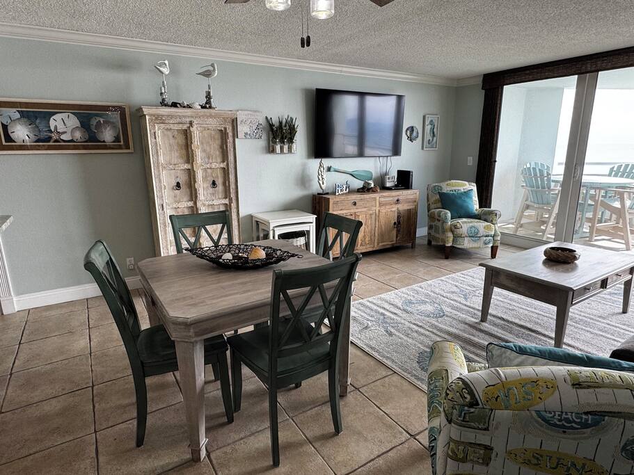 The BEACH is ALWAYS OPEN in Perdido Key........come relax and put your toes in the sane and enjoy the ocean breeze! NOTE: During peak season (March 1st through March 31st and June 1st through August 15th) we only allow Saturday through Saturday rentals. Feel free to message us with any questions. Parking: Parking is available for 2 vehicles for which a guest parking pass is provided for the days rented. Additional overflow parking is available just north of Perdido Sun (Villagio shopping center, across the street, behind the Jelly Fish Restaurant). No RV's, campers, boats or trailers are allowed in either parking lot. We have updated the following in January 2025: New Samsung stainless steel appliances in the kitchen (stove, dishwasher, microwave & refrigerator) New 65" TV in living room New 55" TV in the bedroom New 3” privacy shutters in the bedroom New walk-in tiled shower in the bathroom Our little piece of paradise is the ultimate relaxing beachfront condo located DIRECTLY on beautiful Perdido Key Beach, Florida. This is a recently updated 1-bedroom, 1 1/2 bathroom, 832 sq ft condo that sleeps up to 4 people. The living room highlights a 12-foot glass door/window that opens up to a 5th floor balcony with a spectacular view of the beach. It is perfect for watching the sun rise and set or catching the Blue Angels flying over the beach. This Perdido Sun condo has recently been updated with new furnishings and decor, new stainless appliances in the kitchen and a new tiled walk-in shower in the bathroom. The kitchen has been updated and is fully stocked so you can sit back and relax at the beach. High speed internet WiFi, cable TV, and a new 65" TV in the living room are a few more features for your comfort. We want you to enjoy your time at the beach, so we also include 4 beach chairs, a beach umbrella and beach towels so you won't have to bring your own. The condo has 2 pools (an indoor pool and an outdoor pool) along with a hot tub so you can relax after a day on the beach. If you like to work out while on vacation, you also have a fitness center for your use (must be 18 to use the fitness center). Perdido Sun is two miles from Publix grocery, CVS Pharmacy, and Winn Dixie. Walmart and Target are just 6 miles away. It is also within walking distance to several unique shops and several local restaurants. Pensacola International Airport is just 21 miles and 30 minutes from our condo. PNS airport has daily non-stop flights to most major cities making this an east get away. Our condo is 100% NON-SMOKING. Please reach out to us with any questions. There is a $1000 fine for anyone found smoking in addition to any damages (cost to remove smell of smoke). MUST BE 26 OR OLDER TO RENT. Driving time to Perdido Key is roughly: Dallas/Fort Worth - 10 Hours Austin - 10 Hours Charlotte - 9 Hours Little Rock - 8.5 Hours Houston - 7.5 Hours Memphis - 7 Hours Huntsville - 7 Hours Nashville - 6.5 Hours Atlanta - 5 Hours Baton Rouge - 3.5 Hours New Orleans - 3 Hours Mobile - 1 Hour